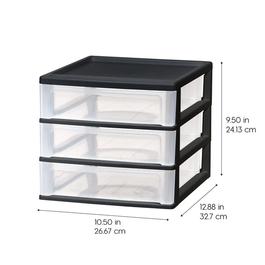 Mini organizador de escritorio de 3 cajones, negro, paquete de 2
