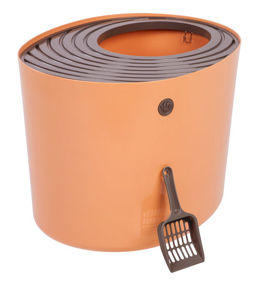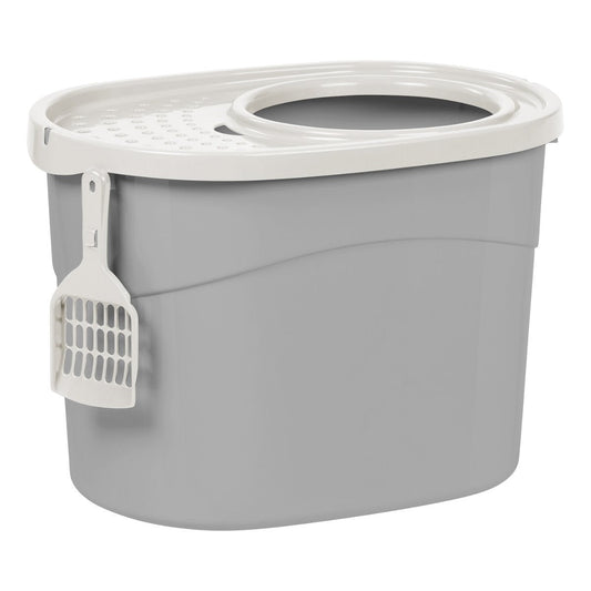 Bandeja de arena para gatos con entrada superior y tapa perforada