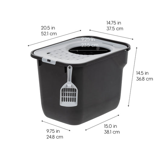 Caja de arena para gatos con entrada superior, negro/gris claro