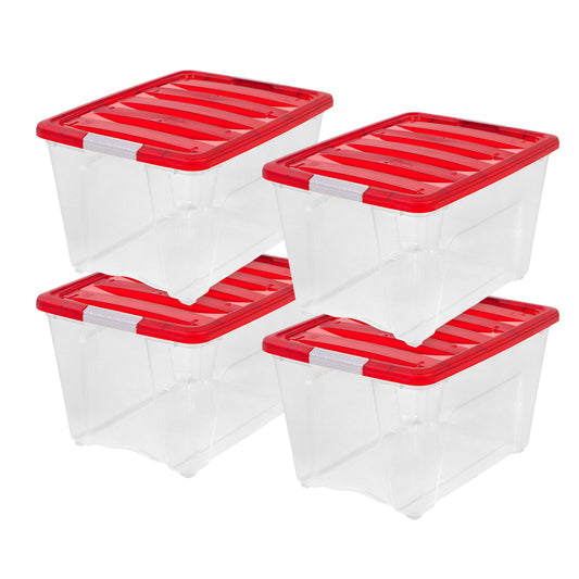 54 Qt. Stackable Holiday Storage Bin with Lid - 4 pack -, Clear/Red