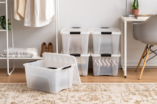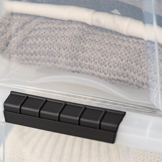 40 Quart Stack & Pull® Box, 6 Pack, Clear with Black Buckle