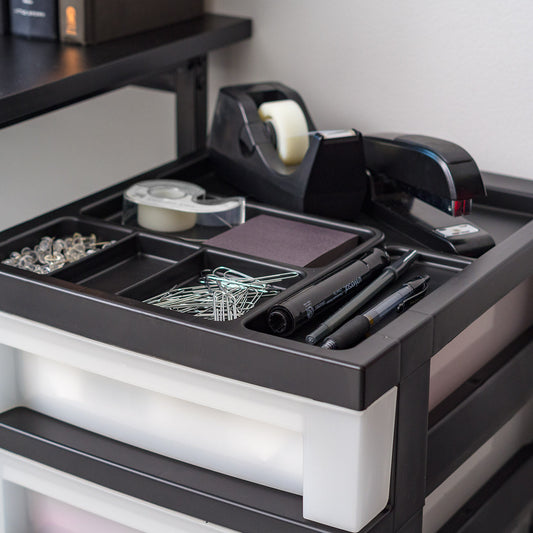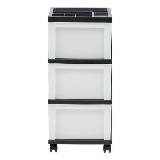 Plastic Storage-Drawer, Organizer-Cart, 3, Black/Pearl