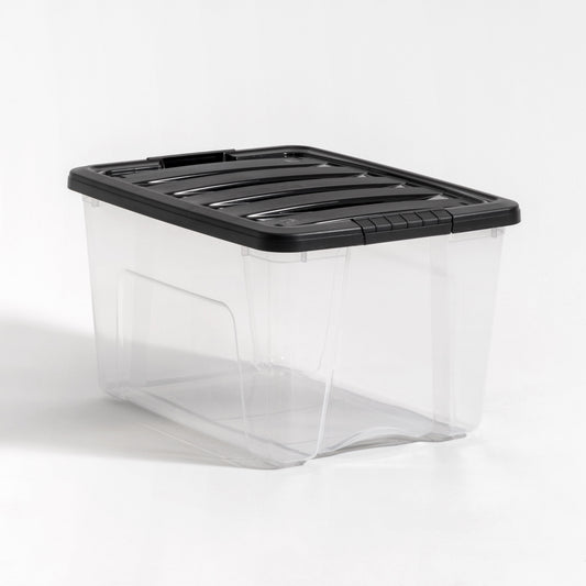 Plastic Storage Bins, Stackable Storage Container with Secure Latching Buckles and Black Lid, 40 Qt.