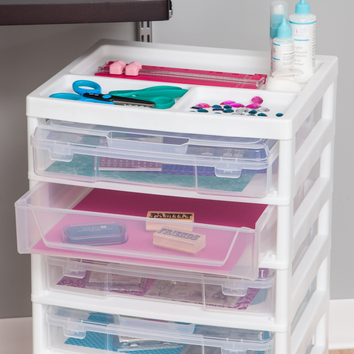 Cada cajón tiene capacidad para papel para álbumes de recortes de 12" x 12"